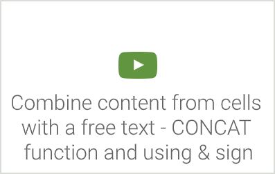 Loe lähemaltCombine content from cells with a free text - CONCAT function and using & sign